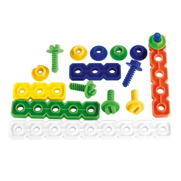 Uma bancada com duas frentes de trabalho colorida e equipada com muitas ferramentas e acessórios! A brincadeira será montar e desmontar, parafusar e soltar parafusos e o que mais a imaginação quiser!