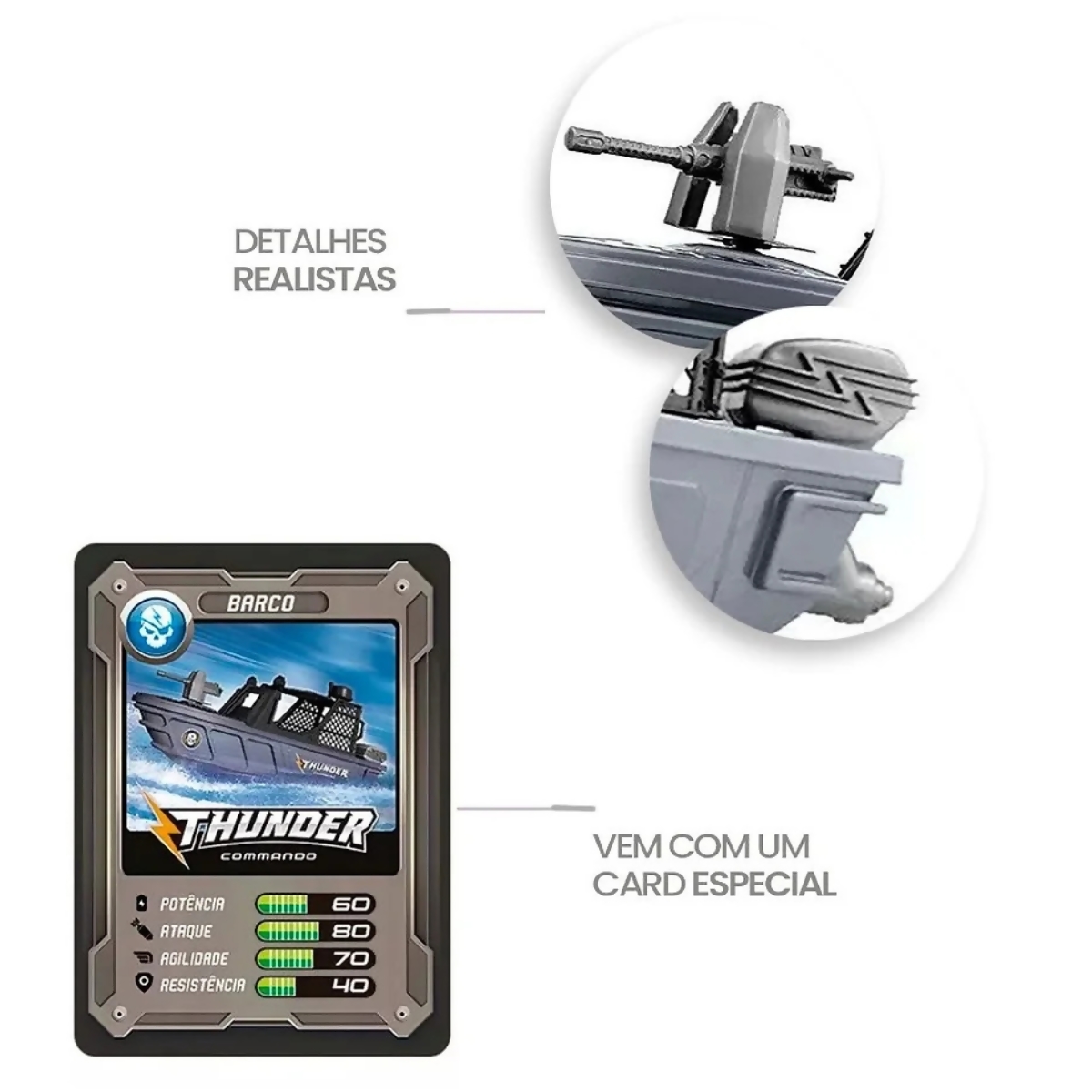 Contém: 1 Barco Thunder e 1 Card.