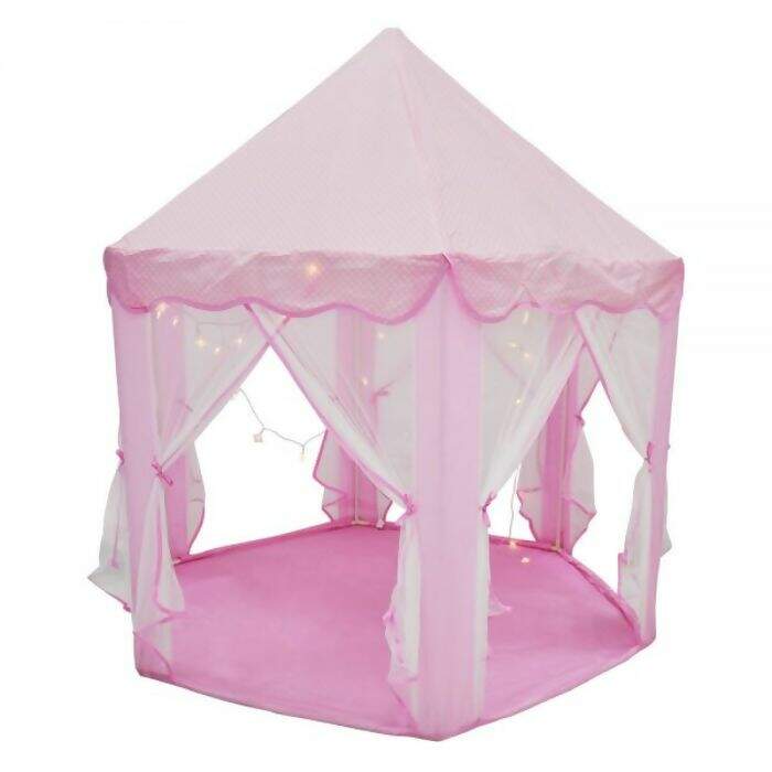 A barraca Tenda Iluminada é adorável! Sua cor é linda, ela é de fácil montagem e possui um cordão de luzes decorativas, deixando a barraca perfeita para uma festa do pijama com os amiguinhos.