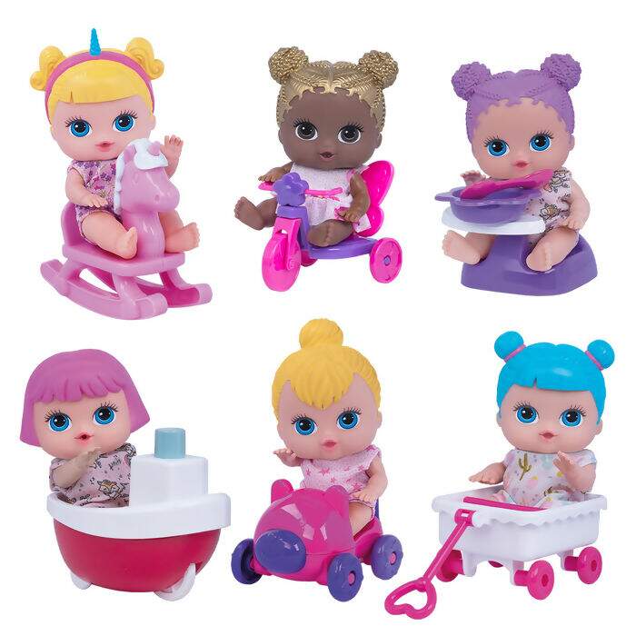 Cada modelo acompanha um acessório: Triciclo, Banheira, Barco, Carretinha, Unicórnio, Cadeirinha ou Quadriciclo.