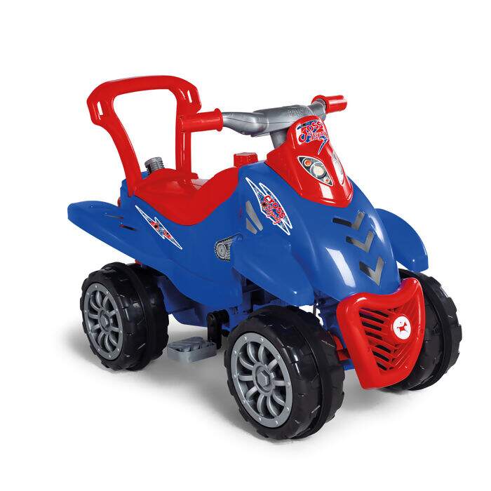 O Cross Legacy vem com rodas antiderrapantes, buzina e um assento que abre e fecha para guardar brinquedos.