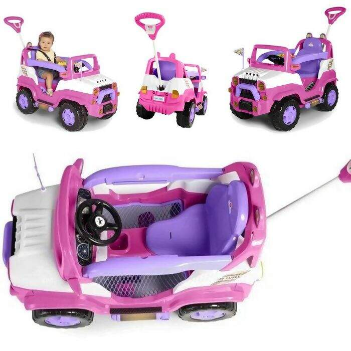 Está na área mais um carrinho dois em um super divertido, com um design off road para os pequenos aventureiros. Para as aventuras de passeio com o papai ou a mamãe, ele vem com acessórios como o apoio de pés, aro protetor e haste com suporte para bolsa. Tem também um painel com peças em relevo, cores e formas que despertam a curiosidade e som que estimula a compreensão de causa e efeito dos pequenos. E para a diversão continuar com a versão pedal, é só desencaixar o aro protetor, retirar os apoios de pé e a haste, e Pronto! Agora é só pedalar por aí! O Diipi tem borracha antiderrapante nas quadro rodas, buzina, bandeira de JP Clube e cinto de segurança como num Jipe de verdade. Os detalhes como faróis na grade frontal, no retrovisor, e acima do banco, encantam e transportam os pequenos para o mundo da imaginação. Ah!! E tem também espaço para guardar pequenos acessórios ou garrafinha de água. É aventura e diversão garantida.