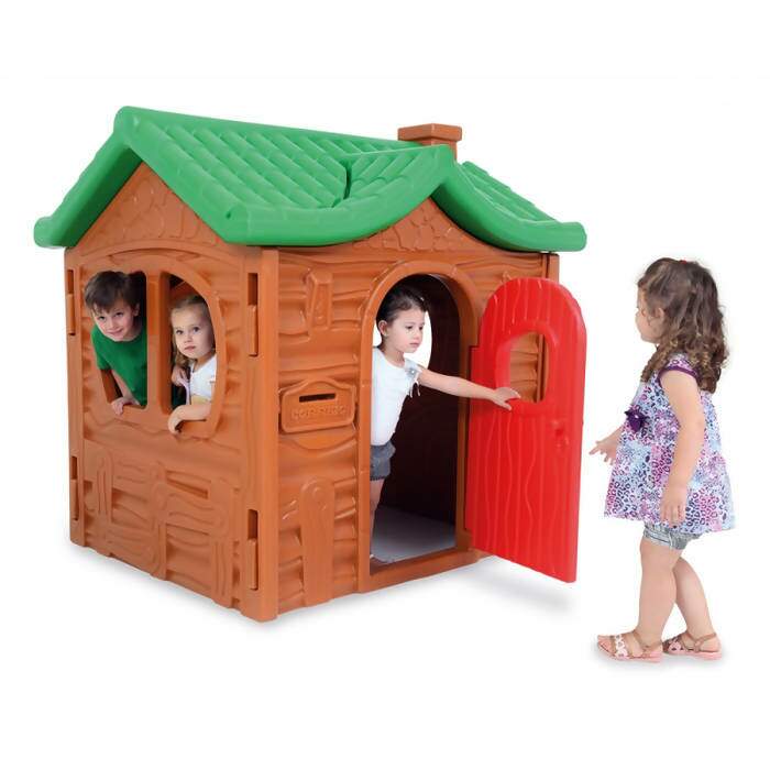 Essa Casinha é simplesmente sensacional, possui um caráter temático, levando as crianças a imaginação de estarem brincando diretamente na natureza. Possui textura simulando madeira, que lembra um verdadeiro chalé no alto de uma montanha.