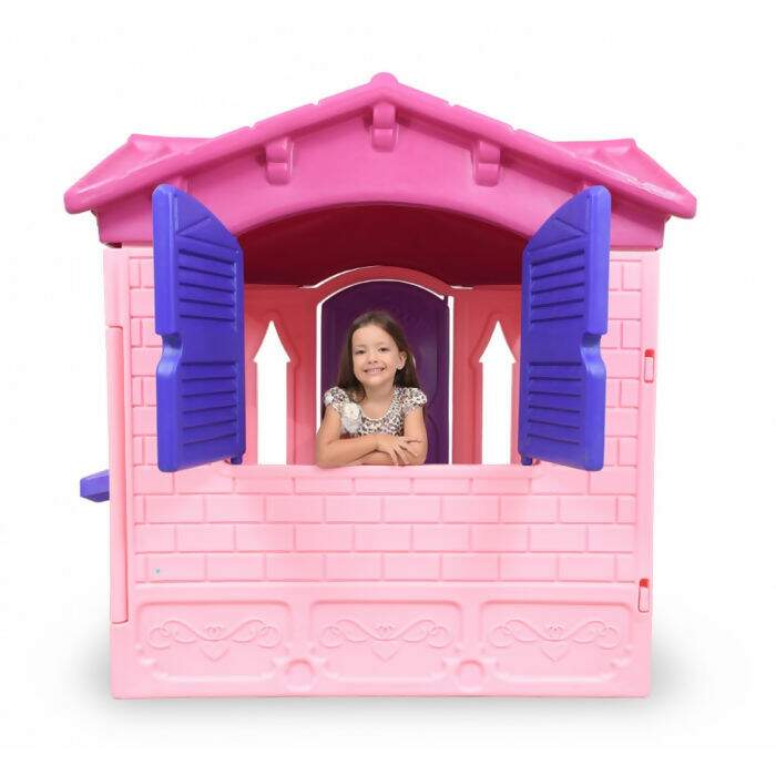 Esta casinha é linda, com o tema da disney possuindo pia, fogão, cadeirinha, floreira, esta linda casinha é ótima para estimular o convívio e a imaginação da criançada, através das divertidas brincadeiras em grupo. Feita totalmente em plástico rotomoldado, altamente resistente. A textura de suas paredes simula tijolos e todos os lados possuem aberturas. Com este produto as crianças terão muita diversão e segurança.