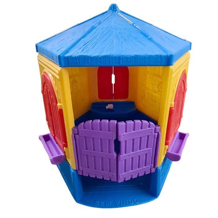 Produzida em polipropileno de alta resistência, conta com telhado texturizado, cores vibrantes e design encantador. Possui portãozinho e 3 janelas laterais que abrem e fecham, estimulando a criatividade e as brincadeiras de faz de conta.