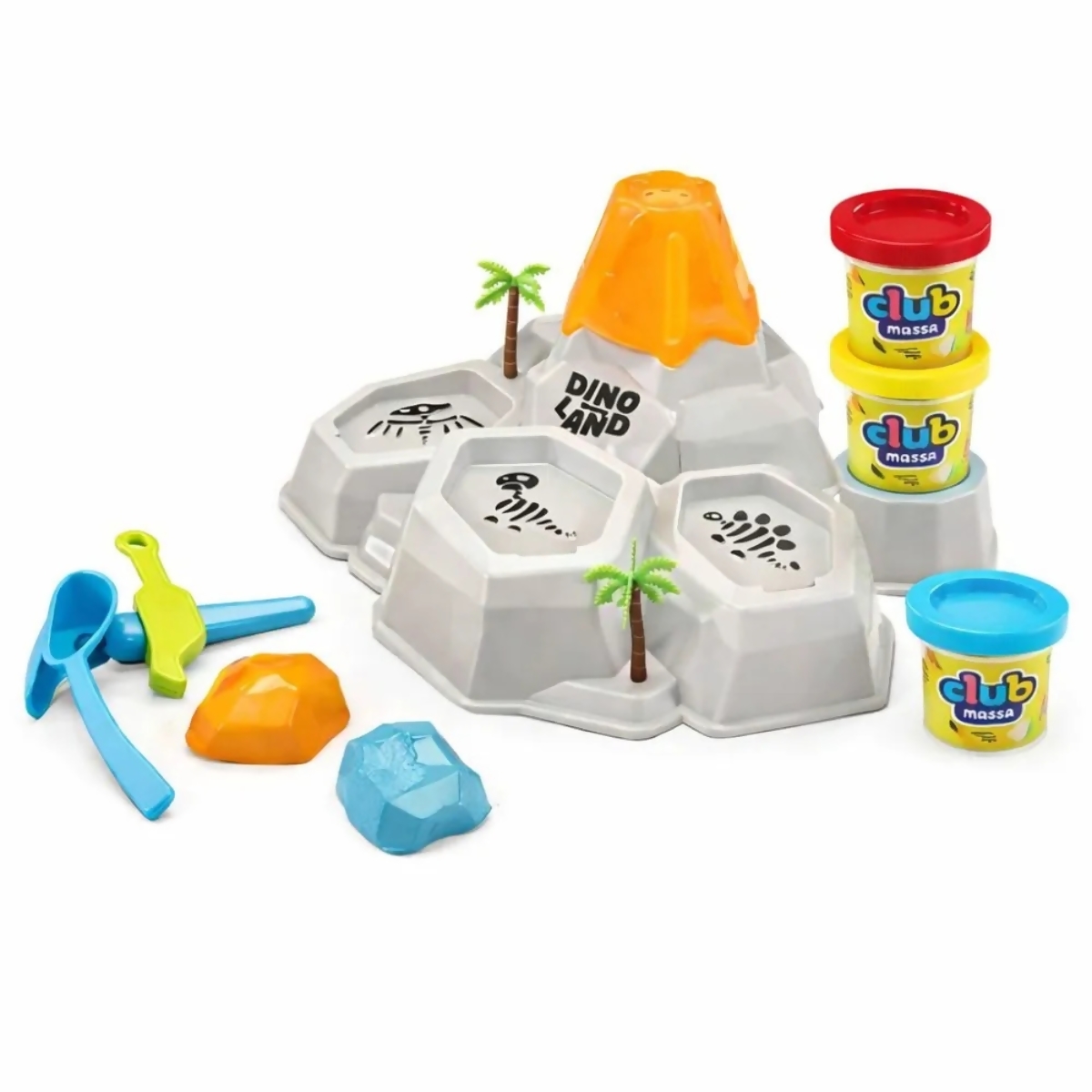 Club Massa Dino Land Vulcão Massinha Modelar com 3 Potes - Usual Brinquedos