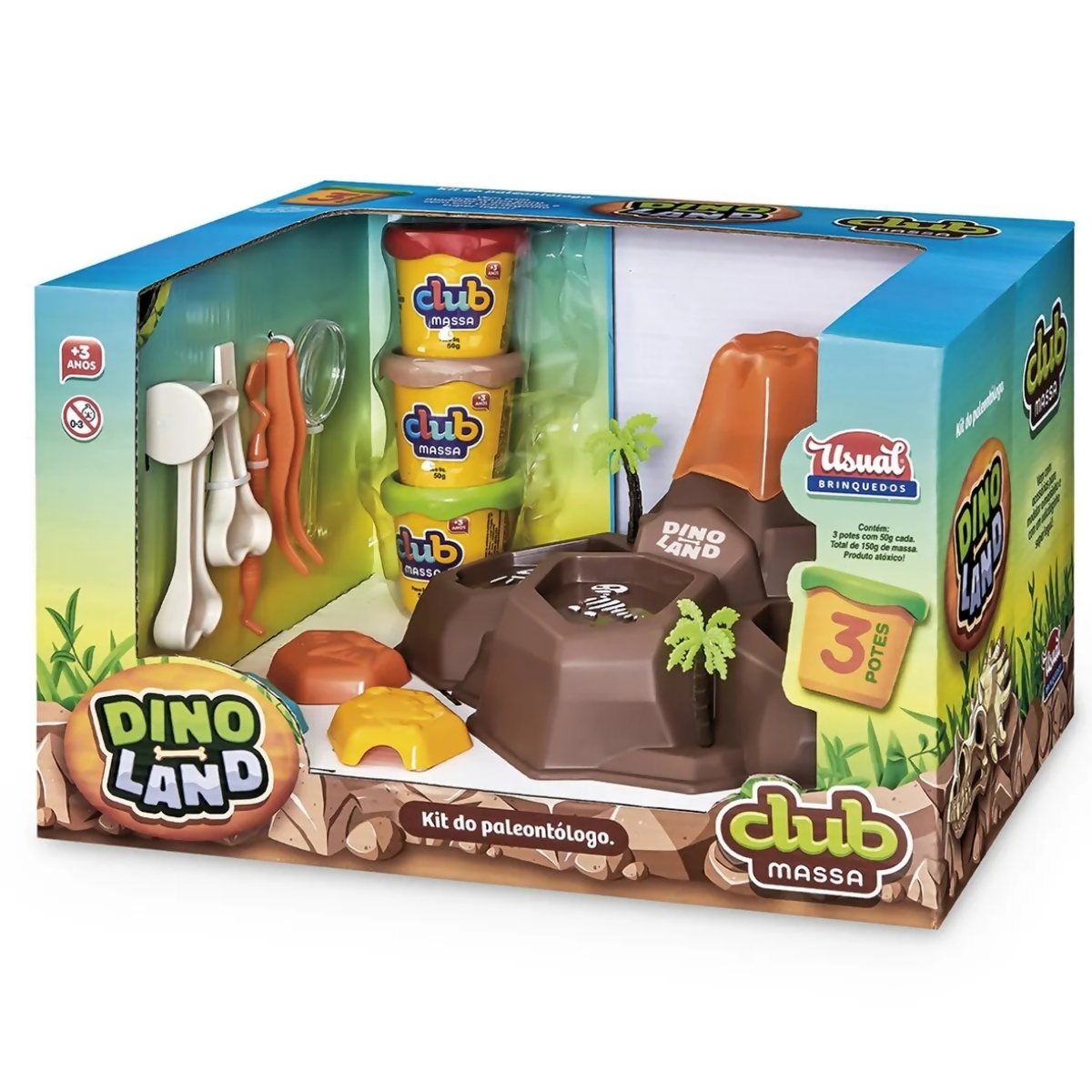 Dados Técnicos Club Massa Dino Land Vulcão Massinha Modelar com 3 Potes - Usual Brinquedos