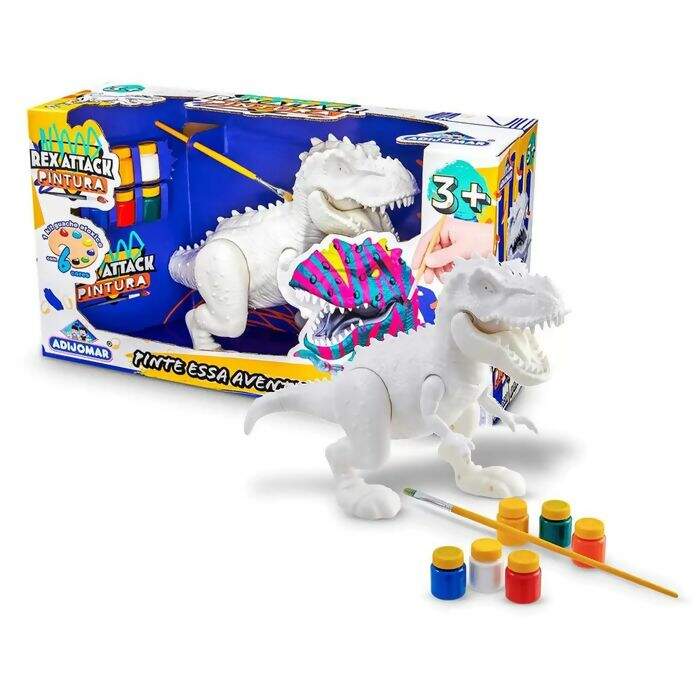 Dados Técnicos Dinossauro Rex Attack Branco Para Colorir +Pincel + 6 Tintas