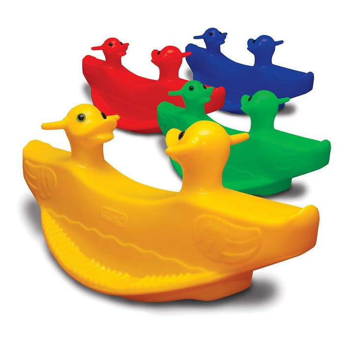 * gangorra para 2 ou 3 crianças em forma de patinho com 4 pegadores laterais e olhos de acrílico