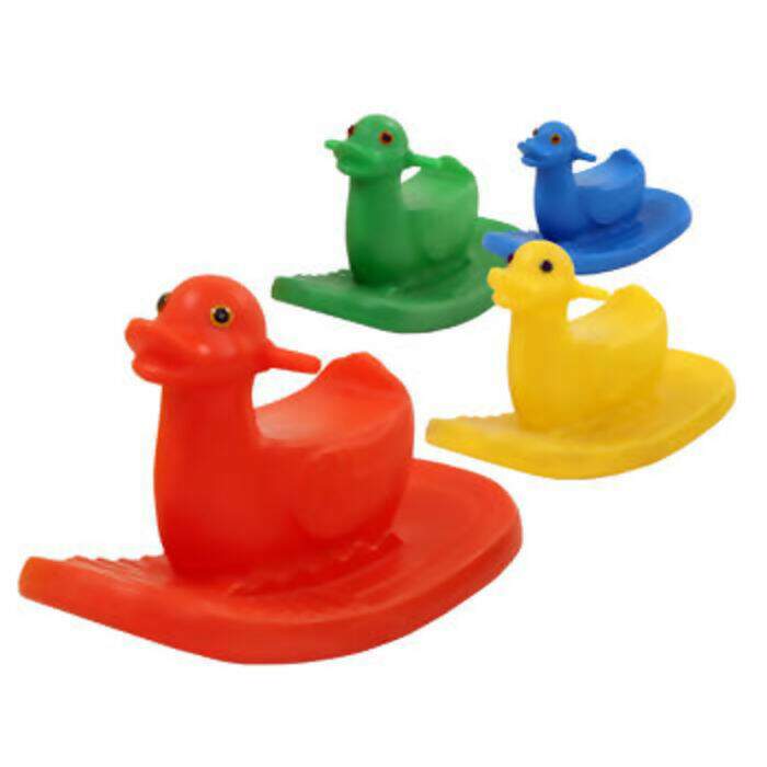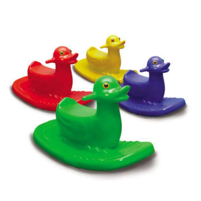 Gangorra Patinho Freso, para 1 criança com 2 pegadores laterais e olhos de acrílico, base em forma de curva, que garante um balanço suave e uniforme, laterais com apoio para os pés com formato anti-derrapante e formas de asinhas e ondas, assentos na extremidade com leve ressalto em forma de rabinho de pato.