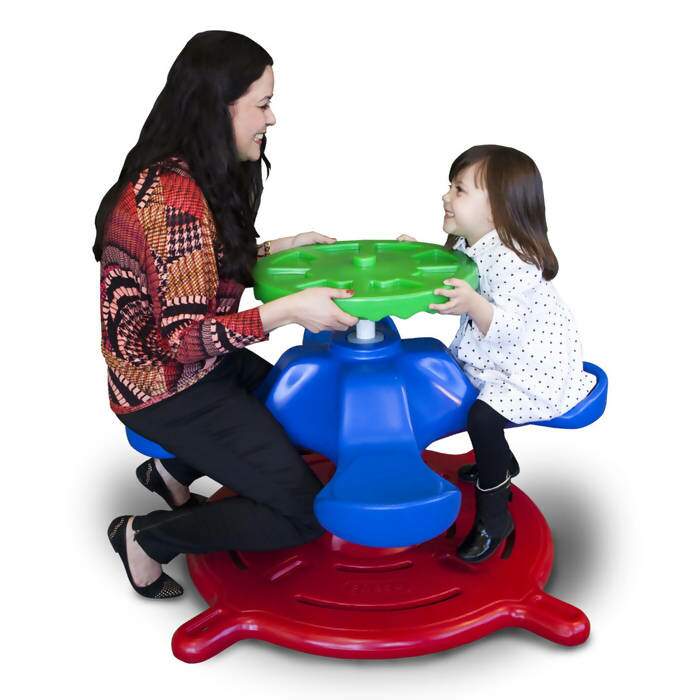 * conceito do antigo gira-gira de metal, não temático, sem formas de bichos, totalmente em plástico, com eixo metálico revestido pela base e pelos assentos giratórios