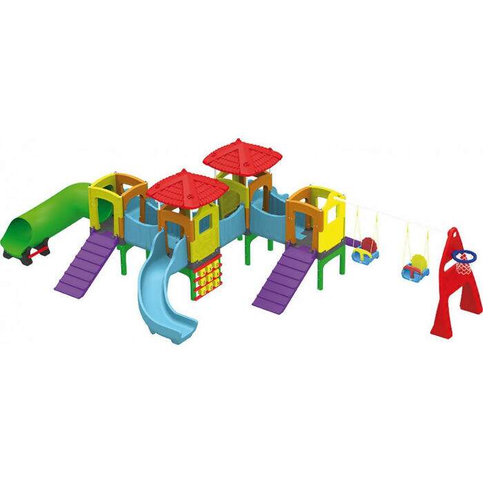 As crianças podem extravasar suas energias no playground Xalingo. Agora brincar de esconde-esconde, escalar e escorregar ficou super divertido. Fabricado em plástico pelo processo de rotomoldagem com longa durabilidade, qualidade, super resistente e de fácil higienização, o play possui múltiplas atividades: multi balanço com cesta de basquete, escorregadores, escaladores, escorregador em túnel, 4 torres, 3 pontes e 2 jogos da velha. Seu sistema é de fácil montagem, dispensando a utilização de elementos de fixação. Produzido em cores vibrantes que despertam a alegria da criançada. Ideal para crianças a partir dos 3 anos de idade.