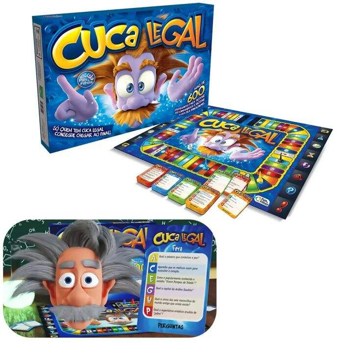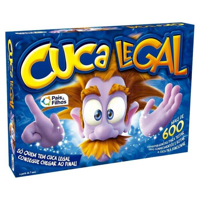 Cuca Legal é um jogo de tabuleiro da Pais e Filhos para brincar com até 6 participantes. Neste divertido jogo de conhecimento só quem tem cuca legal consegue chegar ao final. São 600 perguntas para testar seus conhecimentos e colocar a cuca para pensar.