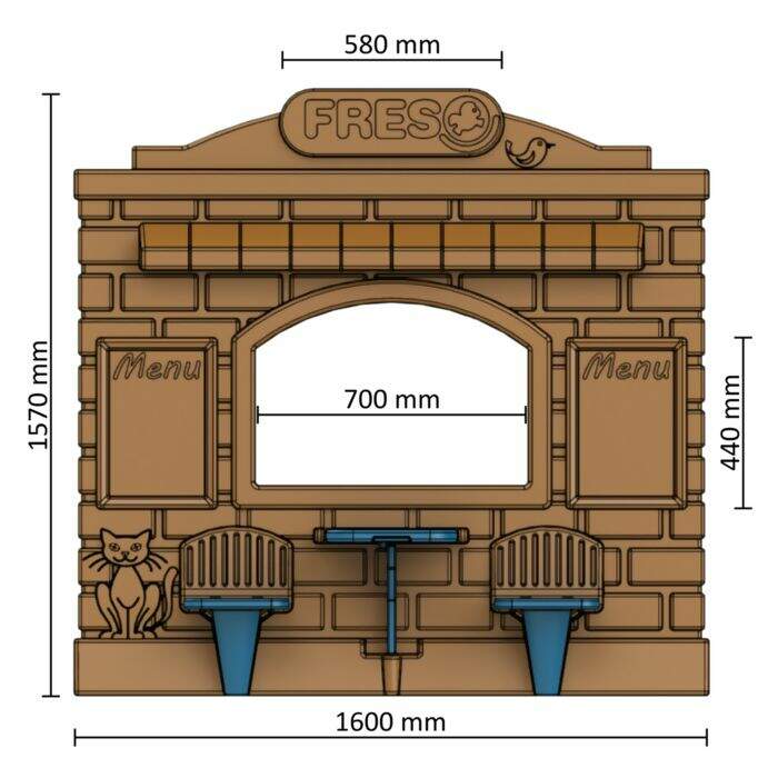 Além disso, a lanchonete freso possui 3 laterais com amplas aberturas para permitir total integração entre diversas crianças e espaço interno de 1,23m².