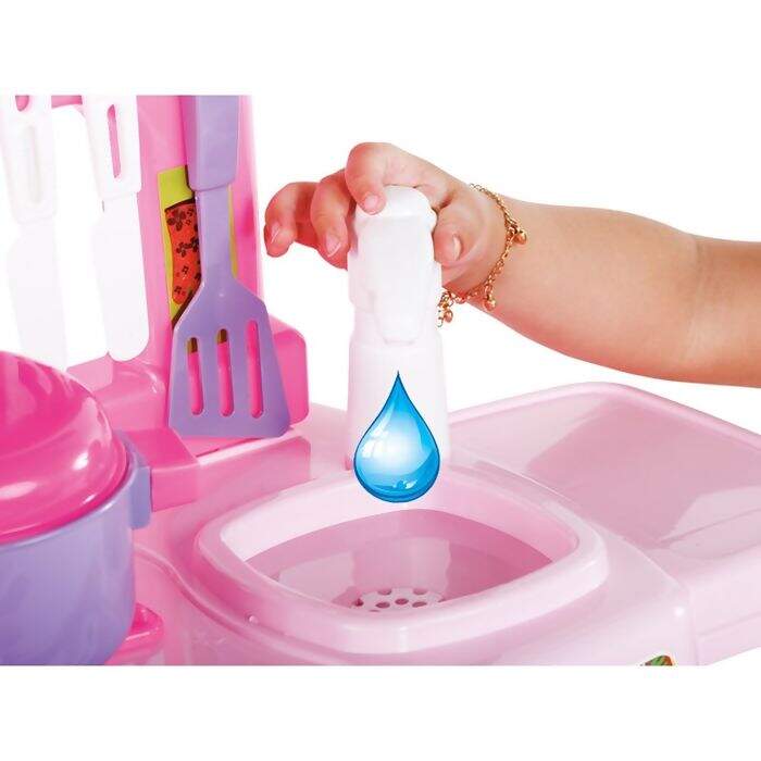 Descrição Mini Chef Rosa Cozinha Infantil com Torneira Sai Água - Tateti