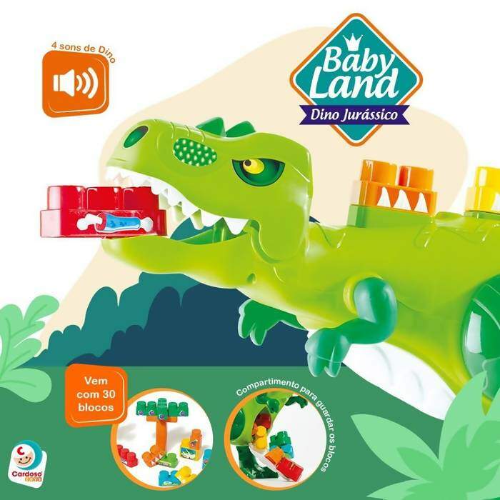 Com 4 sons diferentes e 30 blocos de montar, as crianças vão adorar brincar com o Dino Jurássico!