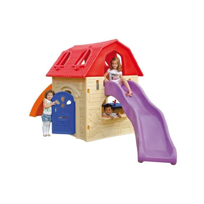Essa casinha tem feito a alegria da criançada, possui dois andares, o que a torna perfeita para aquelas brincadeiras de casinha incentivando o convívio social e a imaginação das crianças, assim é perfeita para as brincadeiras em grupo. Traz consigo pia, caixa de correio, escalador e um escorregador o que deixa tudo mais divertido.