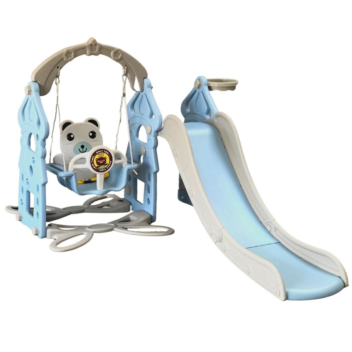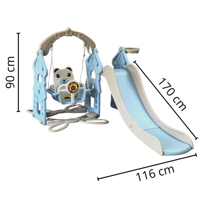 Playground Infantil 3 em 1 Azul - Escorregador, Balanço e Cesta de Basquete.