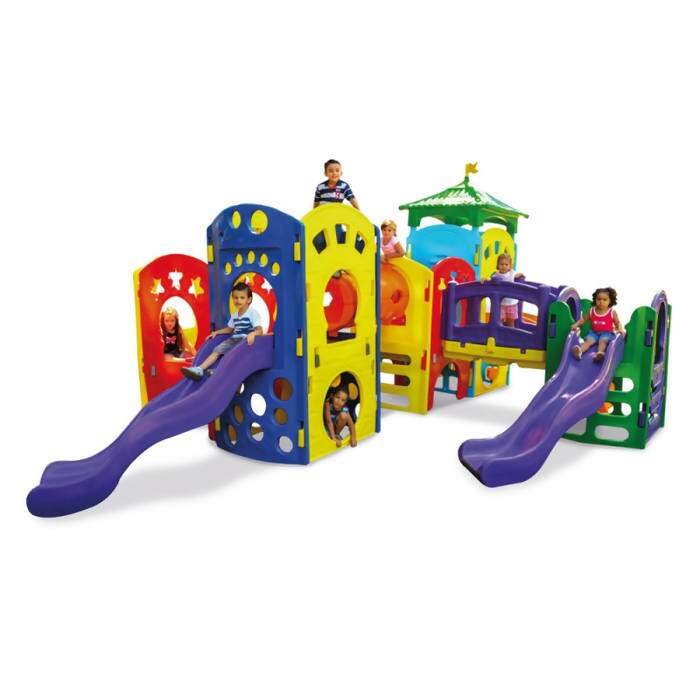 Agora brincar de esconde-esconde, escalar e escorregar ficou super divertido, pois o playground possui diferentes escorregadores: curvo, em ondas, escalador e túneis que interligam um módulo a outro, além de labirintos para brincar de se esconder. O Playground Xalingo é super resistente e de fácil higienização, certificado pelo inmetro e com multiplas atividades. Possui um sistema de fácil montagem, dispensando a utilização de elementos de fixação. Composto por 5 módulos básicos, permite a montagem infinita do brinquedo com a aquisição de novas peças, deixando ele do tamanho que você quiser. Este modelo acompanha 2 paredes de escalada, escorregador curvo, escorregador, tobogã, túnel, ponte, jogo da velha gigante, tabela de basquete com bola e um módulo com telhado.