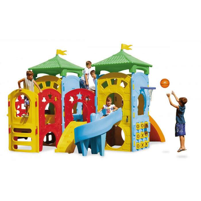 Agora brincar de esconde-esconde, escalar e escorregar ficou super divertido, pois o playground possui diferentes escorregadores: curvo, em ondas, escalador e túneis que interligam um módulo a outro, além de labirintos para brincar de se esconder. O Playground Xalingo é super resistente, de fácil higienização e com múltiplas atividades. Possui um sistema de fácil montagem, dispensando a utilização de elementos de fixação. Composto por 4 módulos básicos, permite a montagem infinita do brinquedo com a aquisição de novas peças, deixando ele do tamanho que você quiser. Este modelo acompanha 2 paredes de escalada, escorregador curvo, tobogã, jogo da velha gigante, tabela de basquete com bola e dois módulo com telhado.