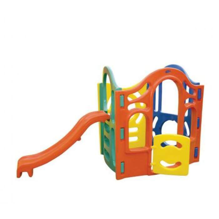 Todo colorido, o que auxilia no desenvolvimento da criativiade, além de possuir, escorregador abaulado no centro tipo tobogã médio; laterais com aberturas para escalada, entrada e saída e porta de entrada para crianças pequenas com fácil acesso ao escorregador.
