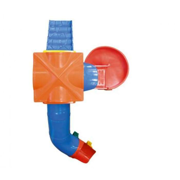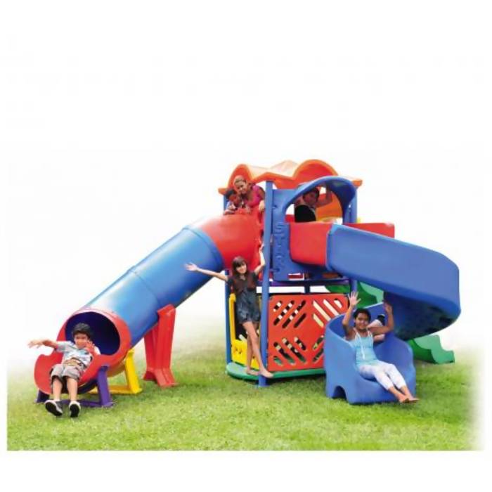Possui: Escada dupla para acesso ao piso superior; Escorregador Espiral; Lateral com bolha acrílica; Piso em polietileno com grade de proteção; Plataforma; Telhado; Escorregador duplo com saídas opostas; Piscina de bolinhas acompanhado com 1.000 bolas; Escorregador formato de túnel em curva com três bases de segurança.