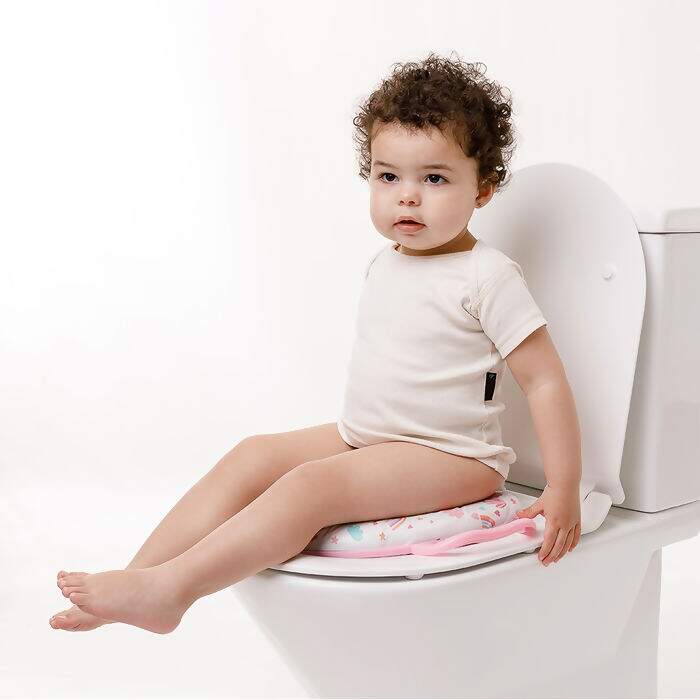 O Redutor de Assento Infantil Arco-Íris Rosa da Buba ajuda as crianças a se adaptarem ao uso do vaso sanitário de maneira ainda mais confortável.