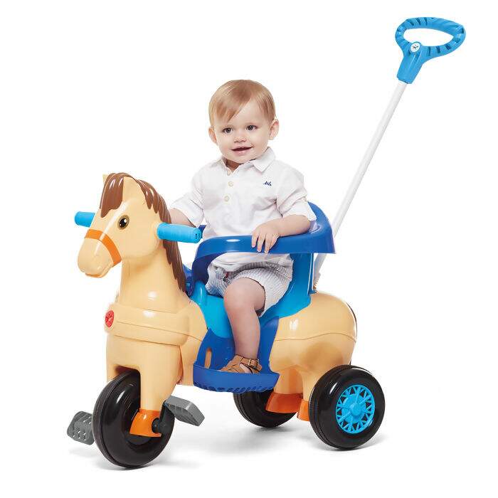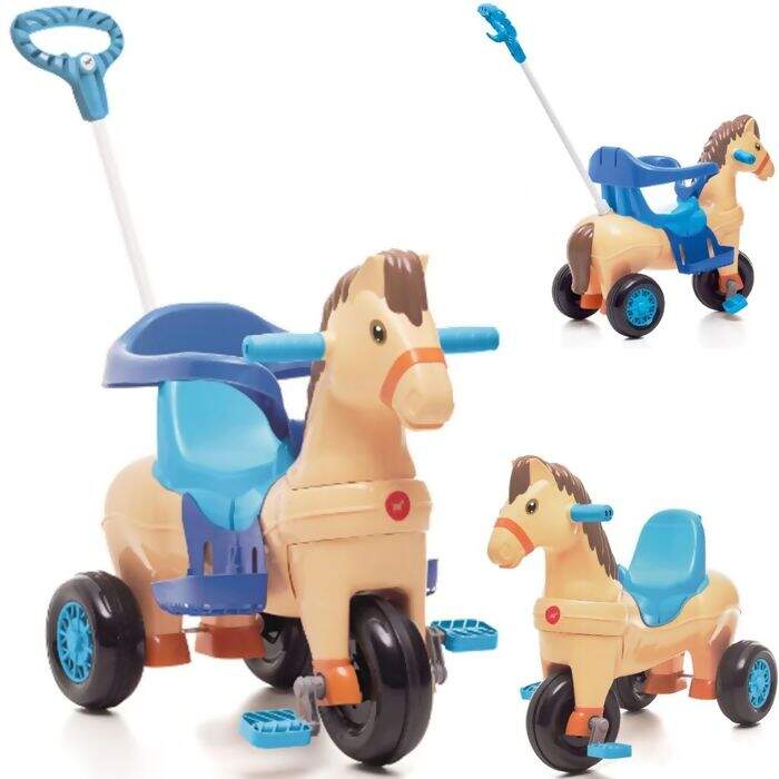 Descrição Triciclo Potó Cavalinho Azulcom Empurrador e Pedal - Calesita